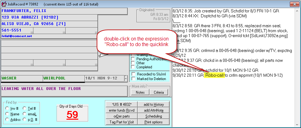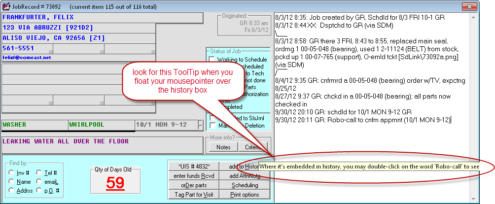 We've added a ToolTip reminder. When you hover your mouse over the JobHistory box, a tooltip will show up anytime the phrase "robo-call" is in a JobRecord's history.