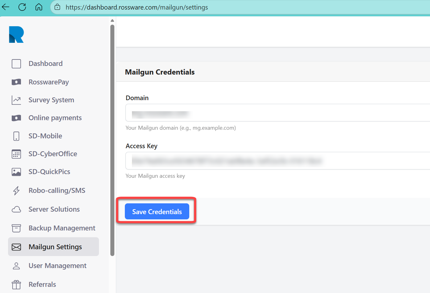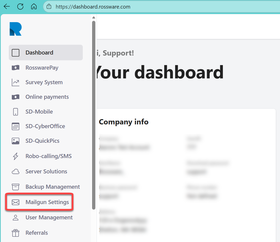 Rossware programs allow Mailgun integration to streamline email configuration for sending confirmation requests, invoices, and more. Create a Mailgun account for your business to get started.