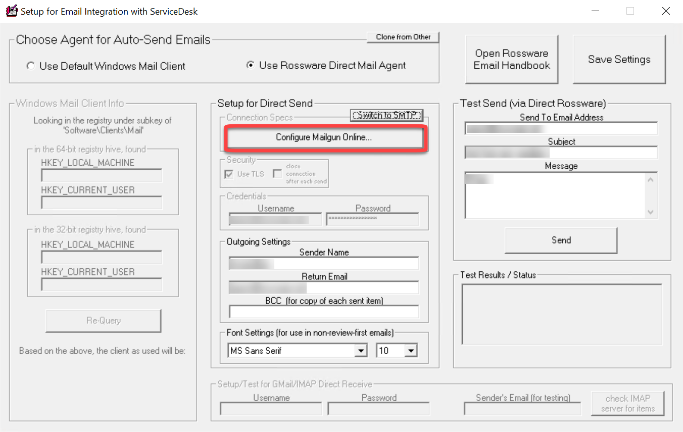If you have not already configured your Mailgun account as outlined earlier in this article, please click on the Configure Mailgun Online button.