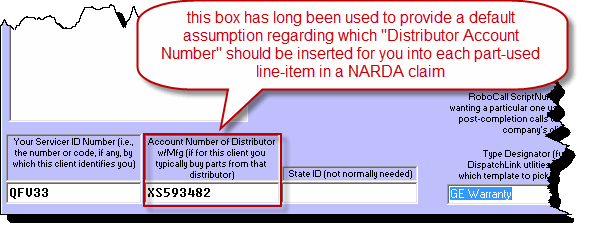 Before this release, ServiceDesk did not directly identify the vendor you got the parts from. Instead, it assumed the vendor you usually get parts from for each OEM. When making a claim, it assumed this usual vendor supplied the parts used on the job. You set up this usual vendor in the QuickEntryTemplate (QET) for each client. This is done in the box shown here: