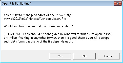 If you agree to switch to the upgraded method, the system will do just that. It will replace the old file used to track your s with a new file called sList.csv in your NetData folder. This new file will have more features and be easy to edit. After you accept this option, if you choose the same MainMenu item again, you'll see this: