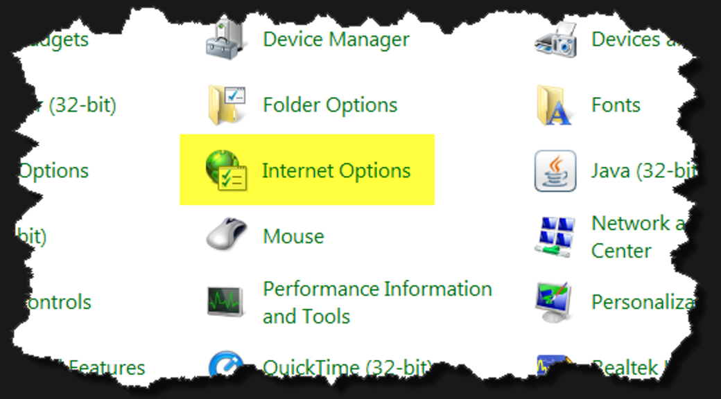 In the Control Panel, select Internet Options: