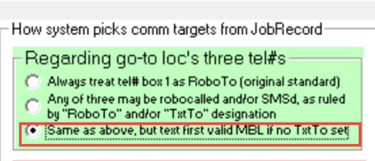 Due to Federal Communications Commission (FCC) regulations, we still recommend that you utilize the “TxtTo” option to indicate that you’ve received explicit permission from the customer to send them text messages. However, enabling the ”Same as above, but text first valid MBL if no TextTo set” option, when combined with the automatic telephone number validation, ensures that your customer will receive automated text messages even if an explicit “TxtTo” number has not been validated.