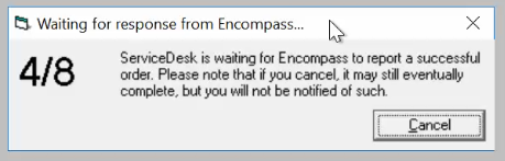 For this reason, the window should stay open until Encompass completely processes your order and the records are updated in ServiceDesk. If this window is closed prior to Encompass completely processing your order, you will need to confirm the order processed correctly on Encompass’s website and then manually update the part process records in ServiceDesk.