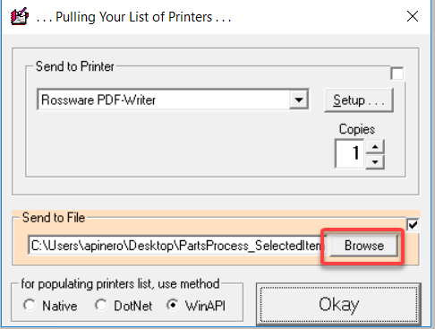 Click on 'Browse' if you wish to designate a different save location or file name.
