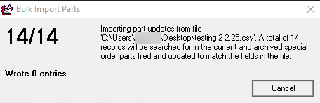 TIP! Due to the complex and critical nature of closely monitoring Special order parts, we recommend careful consideration of the changes that will be made to your system when utilizing the Special Order Part bulk import.