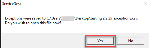 Review the items and address the exceptions in ServiceDesk accordingly.