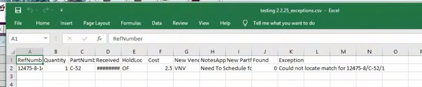 If the file contains items that cannot be matched in ServiceDesk's Parts Process window, ServiceDesk will create a file for you containing the items that did not find a match. Review those items and address the situation accordingly.