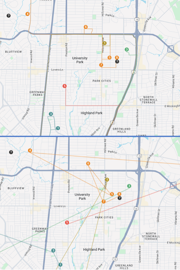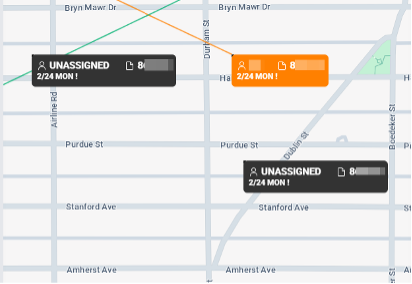 Additionally, the user can select to see the standard “as-the-crow-flies” route lines or street-based route lines. With the flexibility of route markers or cards with more job detail, the user can easily follow the path of the tech’s route to determine accuracy and efficiency.