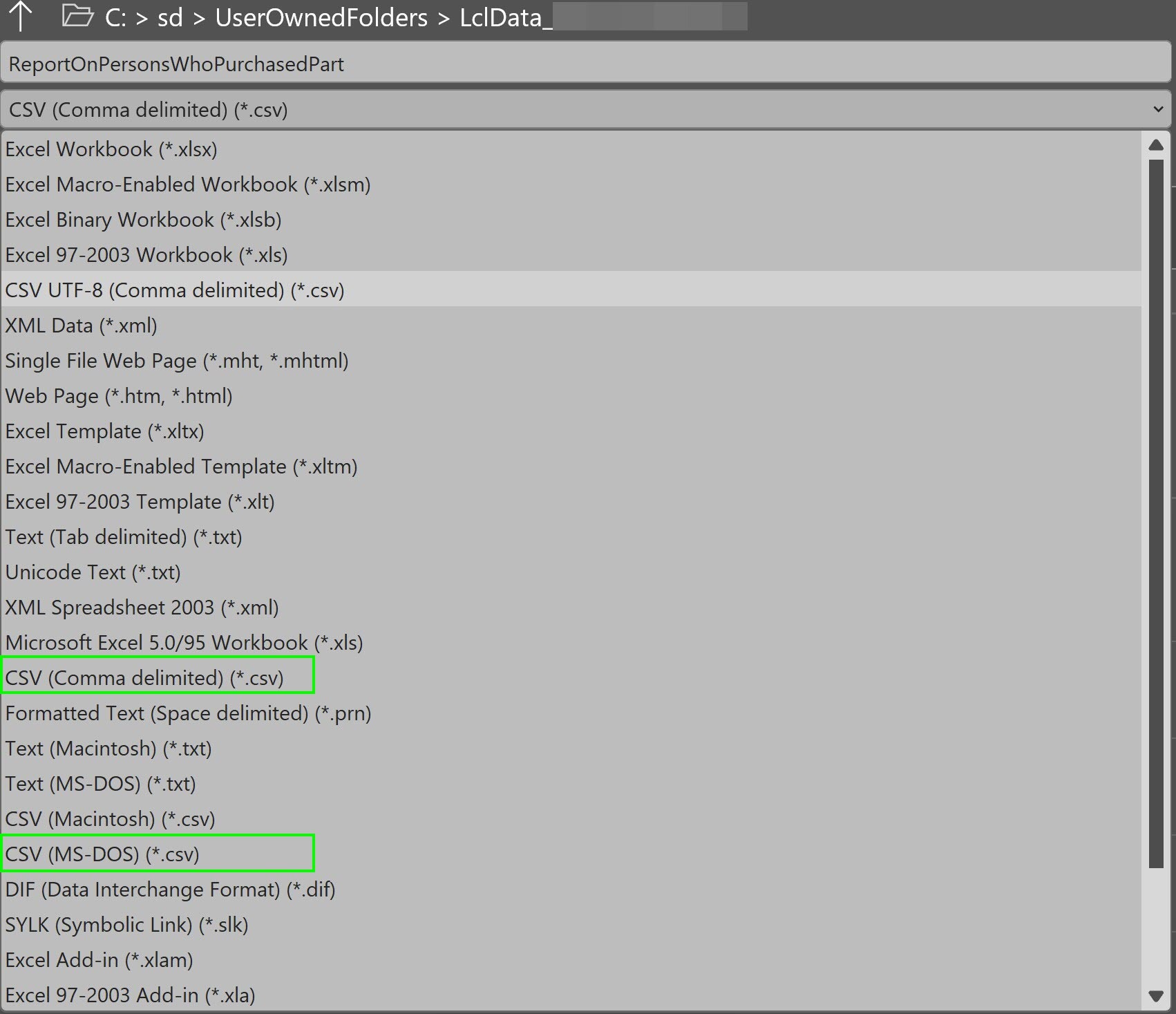 When saving an Excel file as a .csv (comma-separated value) file type there are several different types of .csv file type offered. The preferred choice is a plain comma delineated file or the MS-DOS version. However, this release supports the UTF-8 format that displays as Excel’s first save as option.