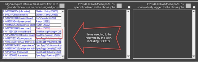 It has been observed that cores were displaying in Parts Pick Management as needing to be returned by the tech after the part had already been returned back to the office. It was discovered that the system was incorrectly handling the updated part status “HpToRtrn” and “RtToVndr” and erroneously concluding those parts were still needed back from the tech. This has now been corrected and cores properly marked via the HoldLoc field with the in-process return statuses will not trigger the part to be displayed as needing to be returned by the tech.