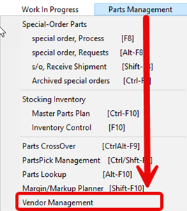 Your vendorslist.csv file is in your netdata folder and can be found by navigating to the Parts Management menu and selection Vendor Management. After opening the file in excel or other spreadsheet application, you would want to add the warehouse number to column J.