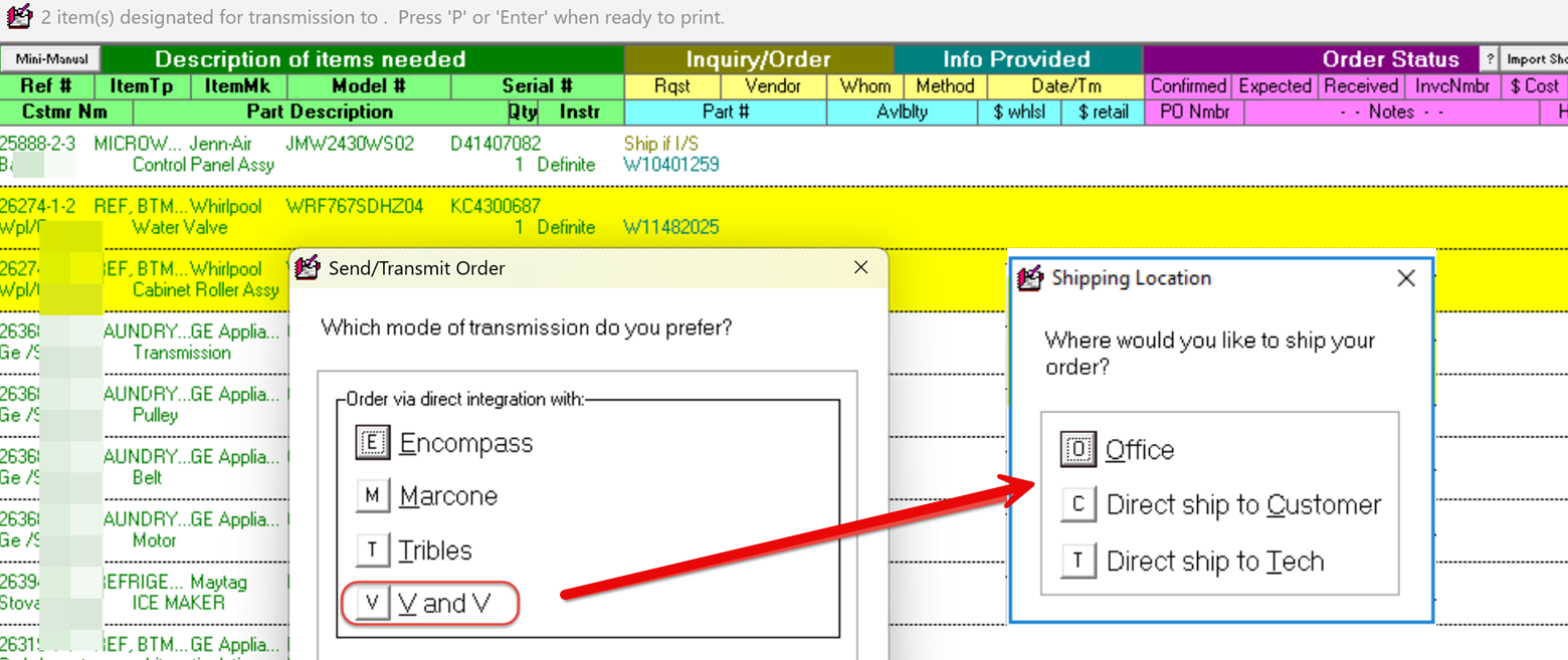This update introduces the 'Ship to Tech' or 'Ship to Customer' direct order options. By default, the office address in the settings (Control + F1) is sent to the Parts Distributor. With this update, the user will be able to select from office, customer, or tech as the ship to option.