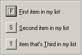 If wanted, you can enhance your list by specifying the character you'd like to provide the program to present as the QuickKey via which your tech may select that item. This specification is made by placing an ampersand ("&") in front of the character of interest. Thus, you could use text like the following: