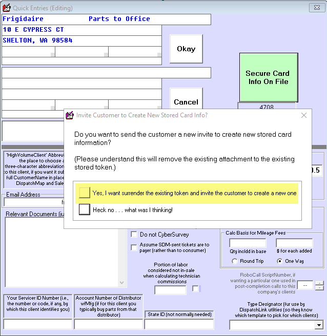 The above steps will bring up a dialog that tells you if a token exists for the customer.