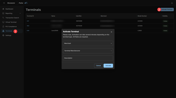 To complete the process you must now add the device to your MerchantTrack account located in your Rossware Dashboard.