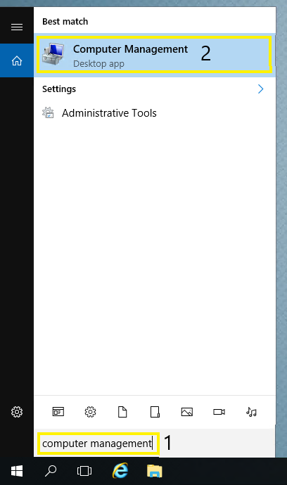 Begin by searching "computer management" in your search bar. The search bar can be found using the magnifying glass icon near your start menu. As you begin typing, the first result should show.