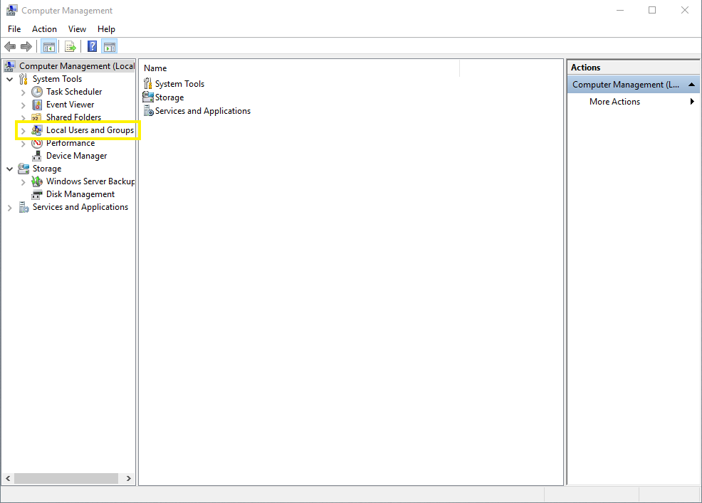 When the computer management window shows, navigate to "Local Users and Groups," which is under "System Tools."