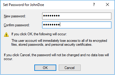 Carefully enter the new password you want to change to twice, then press "OK." Please review the password requirements for the RSS Servers.