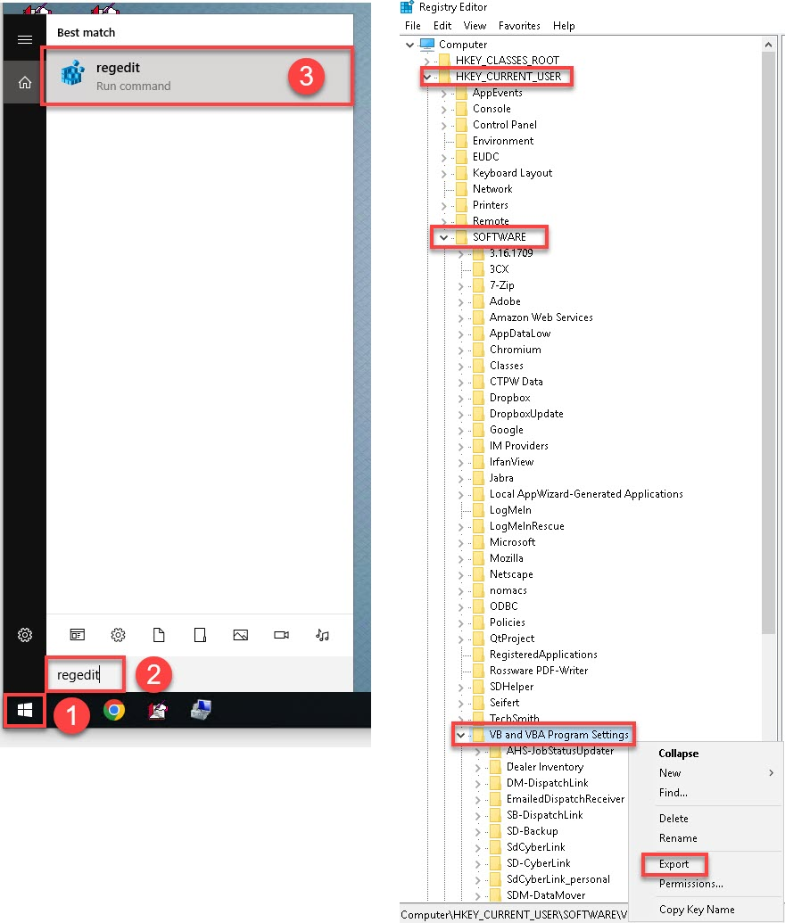 Near the bottom, there's a folder called VB and VBA Program Settings.
