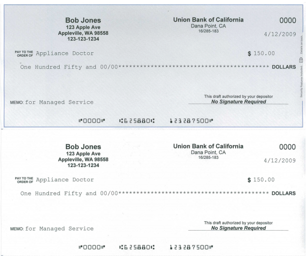 You must obtain the customer's signature on this form. This is not a legal document and is not intended to be. It is simply a means of obtaining the customer's authorization to use their account for payment and the information required. For your protection, make sure the image of a check you receive is properly voided.