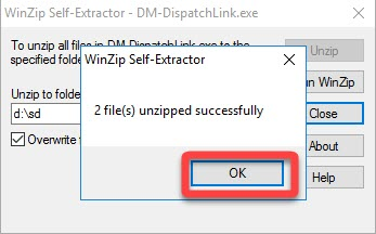 Click OK to conclude the unzip process. Close the self-extractor window.