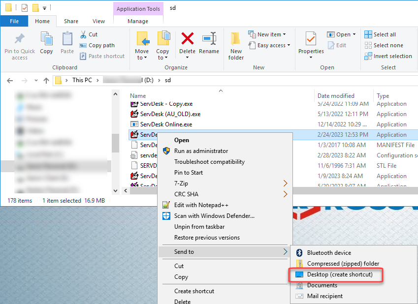 Locate the file named "ServDesk" or "ServDesk.exe." (Ensure there isn't anything after the ServDesk naming convention, being careful to avoid selecting ServDesk(AU_OLD) or similar)