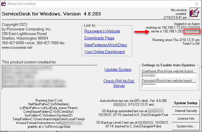 You can identify the name of your server by clicking on File Functions > About ServiceDesk on a station that already has ServiceDesk set up. Locate the field labeled "server is:“ The name server name follows within the parenthesis.