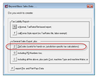 This export leaves it up to you, as the user, to manipulate the data (typically within Excel) to self-calculate your individual liabilities at each jurisdiction, based on your own knowledge of which zip codes belong in each jurisdiction.