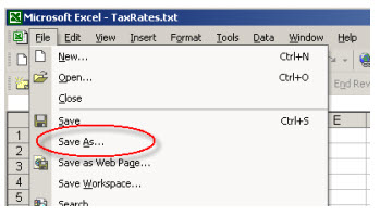 Save the file as "MyPosTaxRates.TXT", and be sure to save as "File-Type" Text-Only.