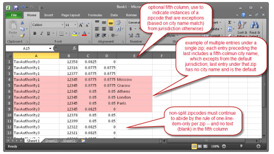 We will sometimes refer to this as the “split-zip code” solution, because (and by virtue of the city name that’s provided) it allows you to essentially “split” a given zip among multiple city names. Please note this system is derivative of Layer 3. It simply augments the zip-rate definitions that are there provided.