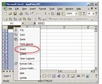 Now you’ll want to insert a new column in front of the zip codes. To do so, right click on the header at the top of Column A. From the drop-down, pick ‘Insert’.