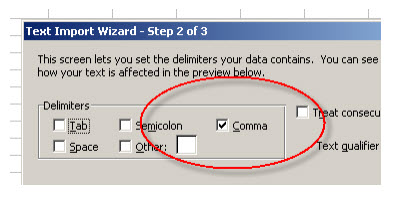 After you select that file, Excel may ask for some guidance in properly parsing its contents. Basically, you just need to let Excel know it’s a ‘Comma-delimited’ file:
