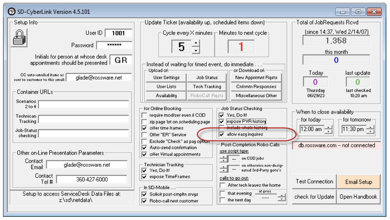 Well, some of our ServiceDesk users do quite a lot of work in conjunction with appliance dealers. In other words, dealers are sending them jobs. Quite often, the dealer wants to check on the status of one or more jobs. That standard method for online job status lookup (i.e., where there has been no hyperlink-based invitation) requires that a consumer provide both a zipcode and invoice number – as a sort of moderate security gateway before getting access to information about the identified job. This is not helpful to a dealer who is seeking job-status information via your website, because the dealer does not generally know the “Invoice Number” that’s been attached to any particular job. So, long ago we received requests to make a liberalized method of access for dealers, and we did so.