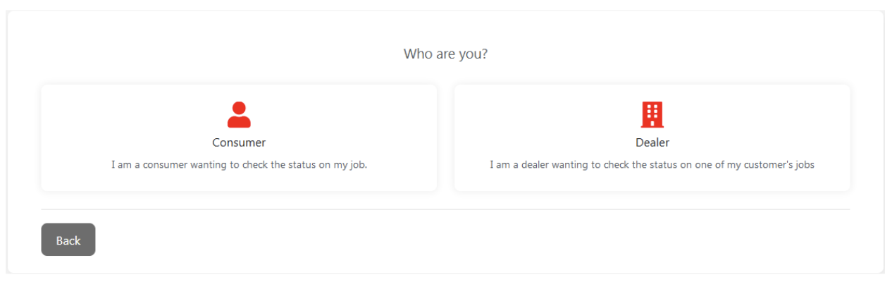 If the person claims to be a dealer, he or she will be able to access Job-Status information based solely on providing customer Last Name and Zip Code or Address Number and Zip Code.