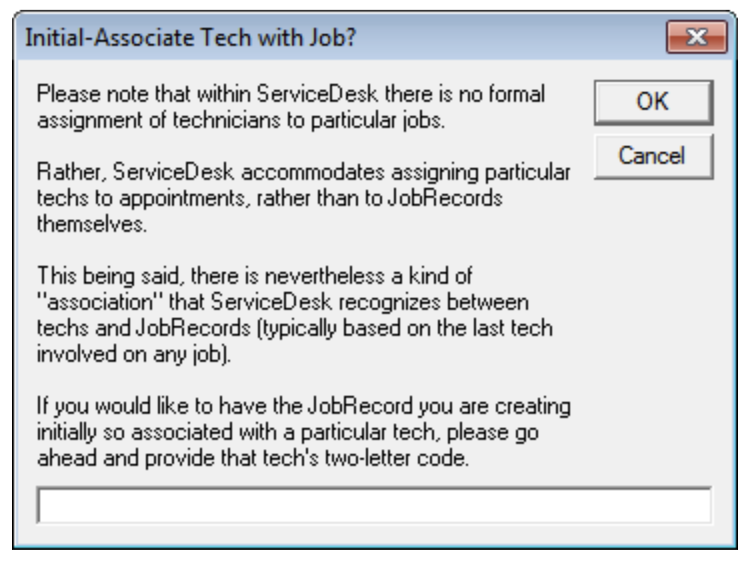 Every experienced ServiceDesk user knows we do not, in the “SD” system, make any direct connection between a JobRecord and a technician. Technicians are assigned to appointments, but not directly to jobs themselves.