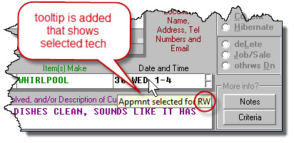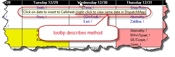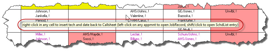 In particular, if the calling context was a Callsheet, the system will add a ToolTip to the appointment box indicating your technician pick: