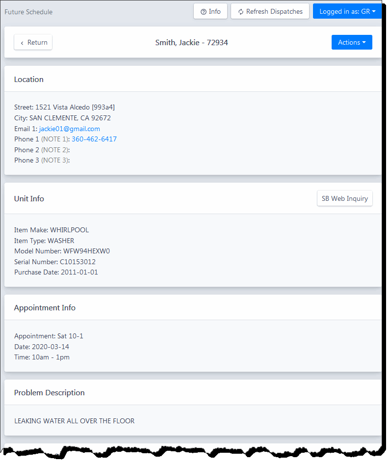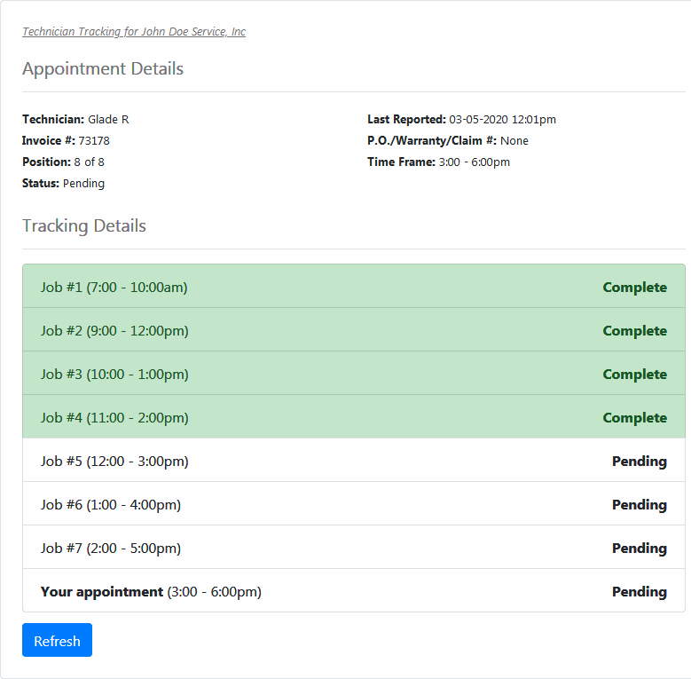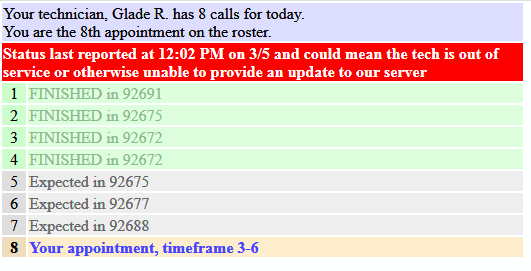 Gen-1 Check-on-Job-Status (optionally offered to customer after tech visit which did not complete the repair):