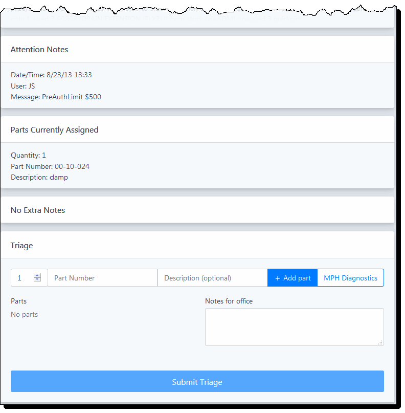 There is also now more functionality. For example, there's now a drop-down of part numbers as you type in a number. And the MPH Diagnostics interface has been upgraded to show you recommendations (based on matching symptom descriptions to the model), etc.