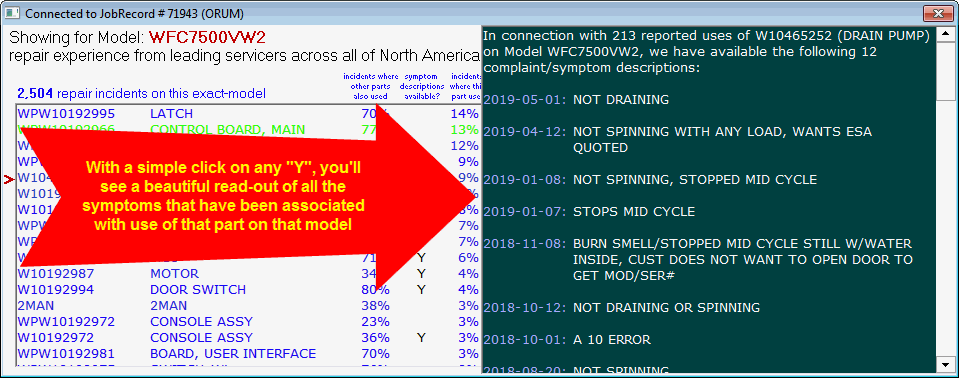Wouldn't it be great if, as you're doing triage, it was similarly possible to obtain an all-but instant grand, broad and detailed view of what is the experience that the entire body of leading servicers in North America (including your own company) has had in servicing the same model you are triaging for -- in particular, as matched even to the symptoms you are presently dealing with?