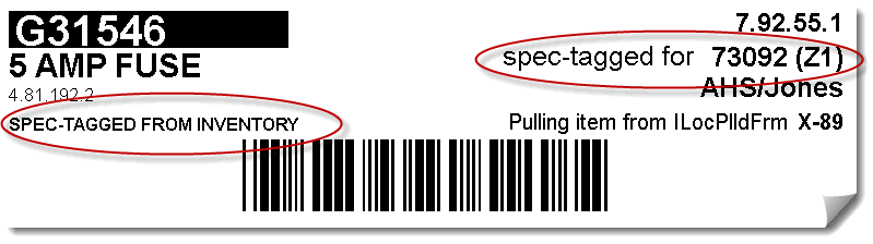A number of users requested this, so now it's here. There's no specific need for you to know how to do it, because it's built into the spec-tagging process. Just do the normal process to create a spec-tag, and a dialog will ask if you want to print a spec-tag label. The label has some differences that fit the circumstance: