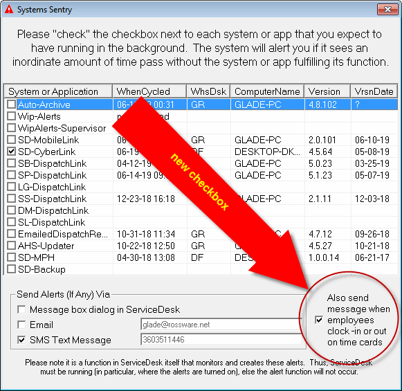 If you check it, the system will send you a message of these employee time-card events on the same basis that you have set to receive other System-Sentry messages.