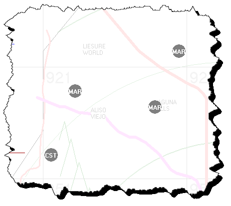 With such locations indicated, they will display in your DispatchMap as grey dots, with the applicable vendor abbreviation within each (similar to the following):
