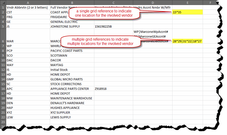 Simply, in your VendorsList.csv file (see this entry for detailed instructions on how generally to create and manage this file), use the fifth column (Column E) to indicate, for each/any vendor, the DispatchMap grid reference where you'd like that vendor's location to be displayed. If you wish to display multiple locations for a single vendor, simply list multiple grid references with each separated by a bar symbol: