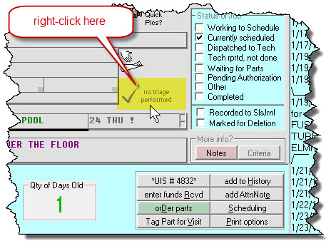 In the last 15 years, it has become ever-more important for servicers to pre-screen jobs in the effort predict what parts are most likely to be needed, and then attempt (at least where reasonable) to assure the tech is sent out with such parts (whether it's by ordering in such parts ahead of time or by spec-tagging them from inventory). As this need has grown, Rossware has simultaneously invented, added to and bolstered the retinue of tools its systems offer to assist.