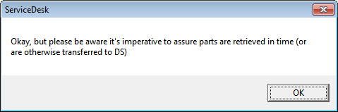 Thus, ServiceDesk now has a system to directly protect against this scenario (to be clear, the PartsPick system already exists to, among other things, assure retrieval of parts that should be coming back from techs, and that in itself should for most circumstances protect against this kind of thing . . . but that's the operative word: "most" is not the same as "all").