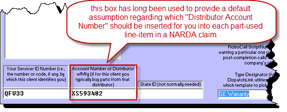 This upgrade allows ServiceDesk, when inserting part-item entries into a claim, to do much better than just assume that each such part was acquired through your QET-default-indicated vendor. Instead (and so long as you have the new Enhanced Vendor Management system appropriately setup), ServiceDesk will look to see who was the vendor from whom you actually acquired the part, and will insert that particular vendor's Distributor Account Number (assuming, of course, that it's provided in your Enhanced Vendor List).