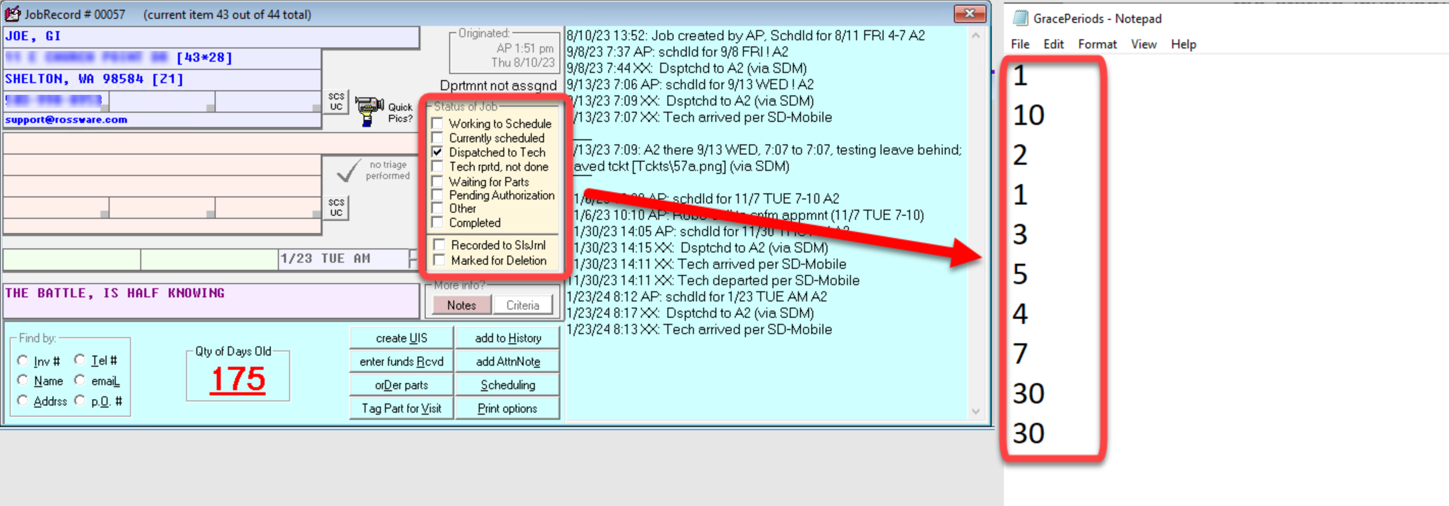 Insert the line items and add a value (number of days) to match the number of days grace you want to allow each status. These lineitems will directly correspond to the corresponding JobRecord statuses in the face of the JobRecord.