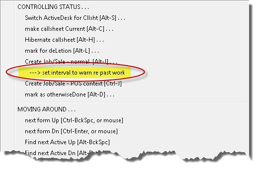 To do so, bring up your Callsheet "Cheat-Sheet" (just right click on any otherwise non-operable place on the face of a Callsheet). Look for the following in the resulting Cheat-Sheet display, and click on it: