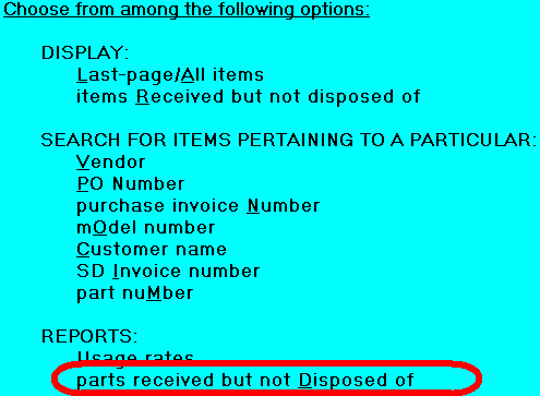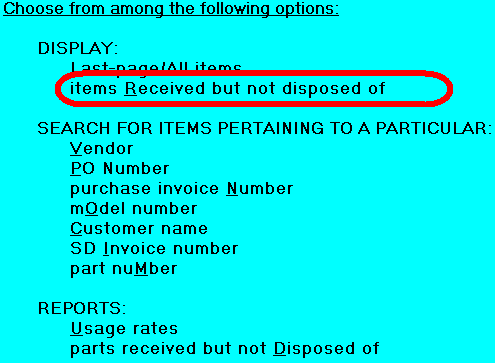 Thus (and as an example), if you want to specifically review items that have been returned to the vendor and on which you're awaiting credit, that specific category can be selected.